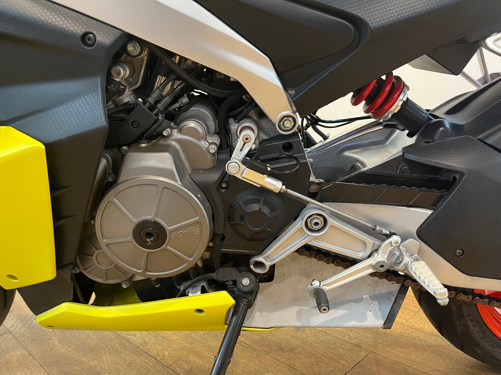 ENGINE Aprilia forward-facing parallel twin, four stroke, liquid-cooled with radiator and